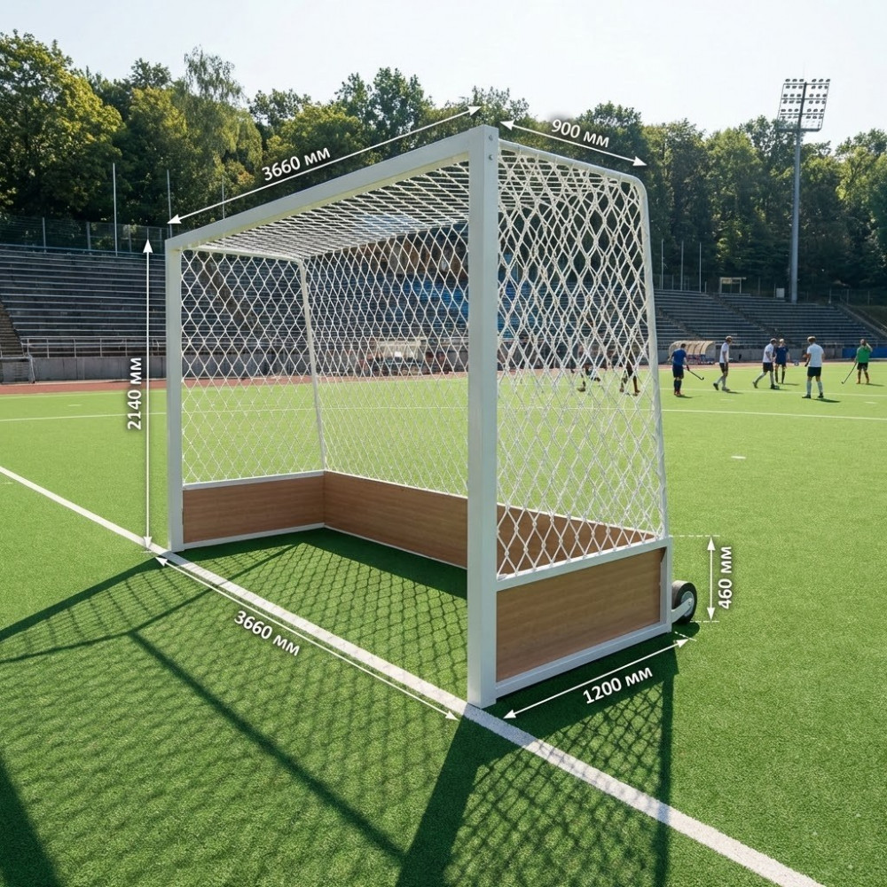 Надежные стальные ворота для игры в хоккей на траве. Отличный выбор для оснащения стадионов, спортивных школ и тренировочных баз, сочетающий доступную цену, увеличенный вес для максимальной устойчивости и высокую прочность.